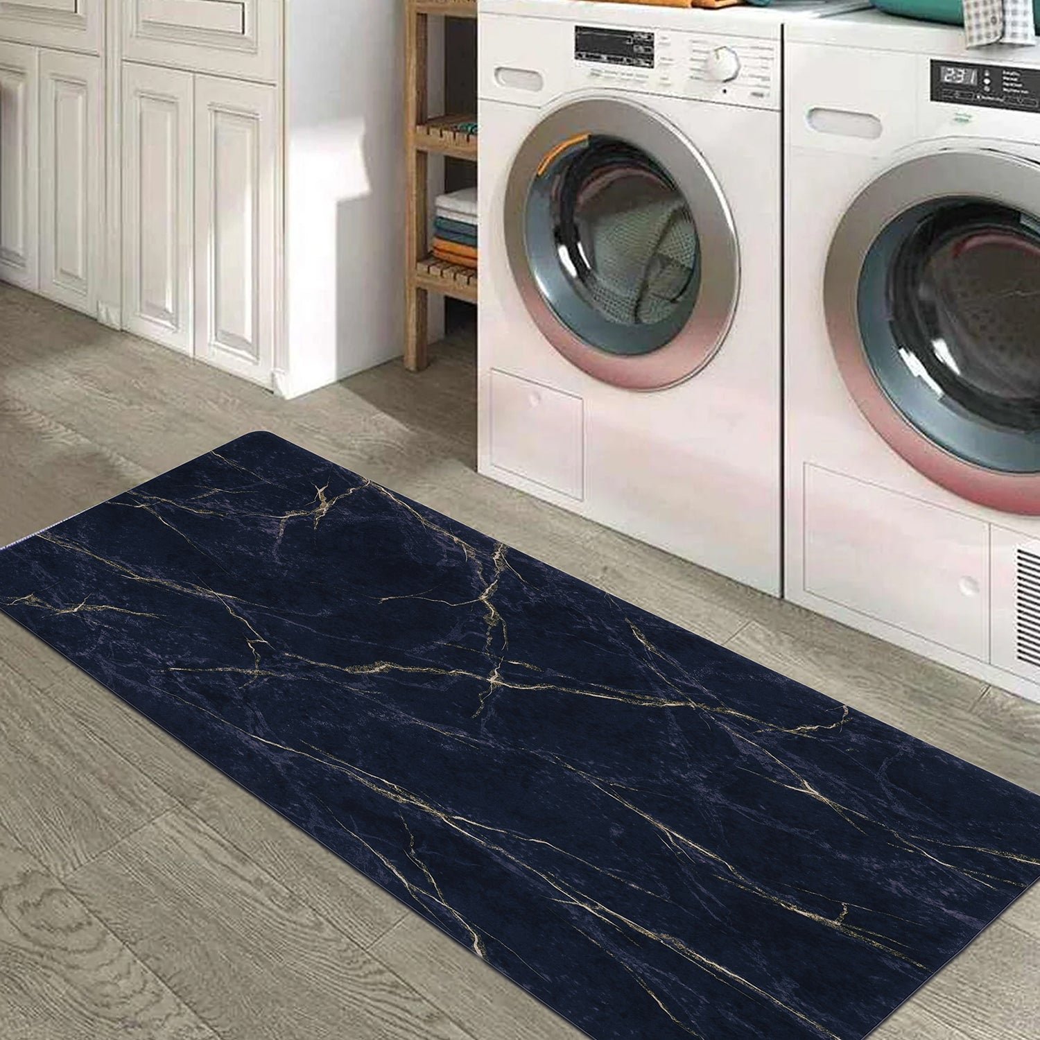 This modern rectangular runner features a stylish abstract design and is perfect for kitchens, laundry rooms, hallways, or entryways. Measuring 155 × 35 cm and weighing 1.2 kg, it features a durable rubber base that provides anti-skid protection to keep it firmly in place. The runner is a super absorber, effectively soaking up water and moisture, helping to keep floors dry and clean. Designed for everyday use, it is easy to clean, quick to dry, and built for long-lasting performance.