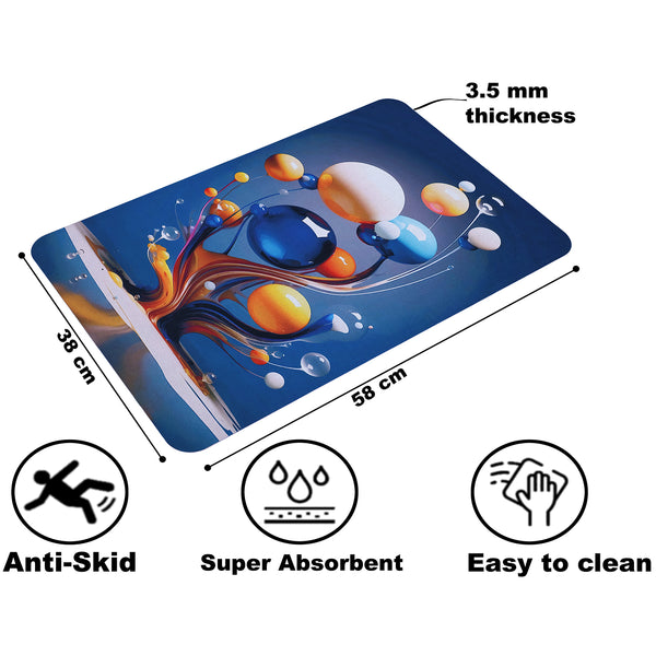 This home essentials combo includes a modern rectangular runner and a durable rubber bath mat, designed for both style and practicality. The runner, measuring 155 × 35 cm and weighing 1.2 kg, features a stylish abstract design and a durable rubber base that provides anti-skid protection and effectively absorbs water to keep floors clean and dry. The Bella True bath mat, measuring 38 × 58 cm and 3.5 mm thick, is made of high-quality material with a non-slip mesh PVC bottom for added safety in the bathroom. Both are easy to clean, quick to dry, and made for long-lasting everyday use, adding comfort and elegance to your home.