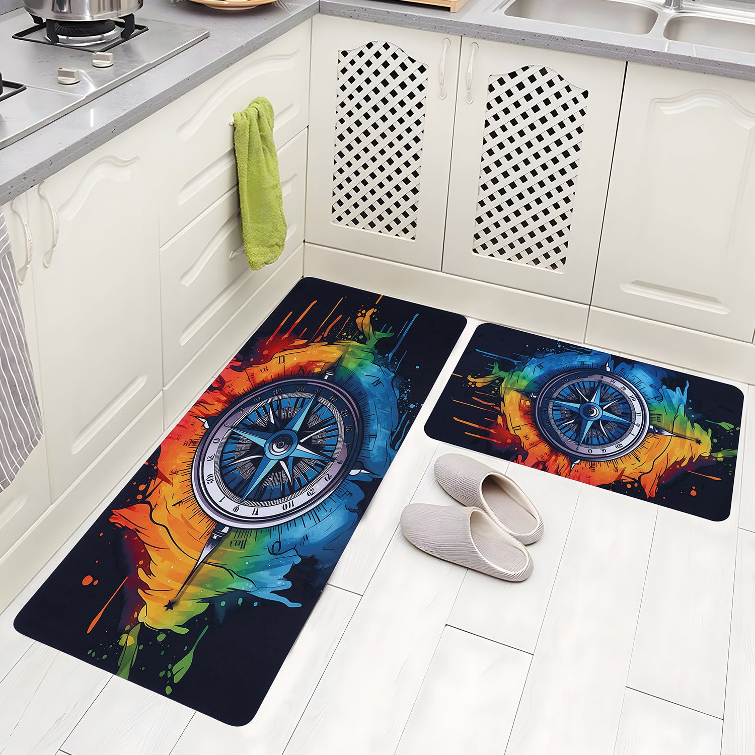 This home essentials combo includes a modern rectangular runner and a durable rubber bath mat, designed for both style and practicality. The runner, measuring 155 × 35 cm and weighing 1.2 kg, features a stylish abstract design and a durable rubber base that provides anti-skid protection and effectively absorbs water to keep floors clean and dry. The Bella True bath mat, measuring 38 × 58 cm and 3.5 mm thick, is made of high-quality material with a non-slip mesh PVC bottom for added safety in the bathroom. Both are easy to clean, quick to dry, and made for long-lasting everyday use, adding comfort and elegance to your home.