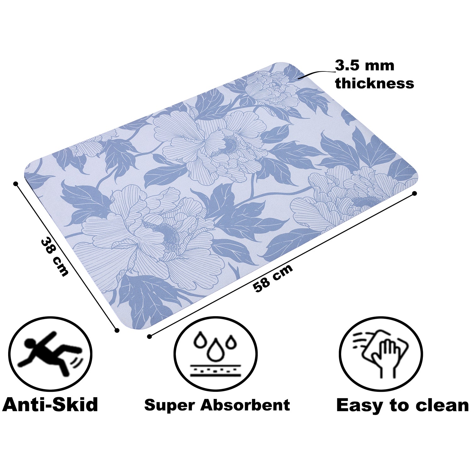 Rubber Bath mat are non-slip bottom made of mesh PVC material, the bathroom mat prevents shifting and skidding, keeping you and your family safe from slipping in the bathroom. Please note that it should be placed on a clean, dry, and flat floor only, as water under the mat can cause it to slip. Always keep the bottom of the foot mat dry. Size: - 38X58cm with 3.5mm thickness.