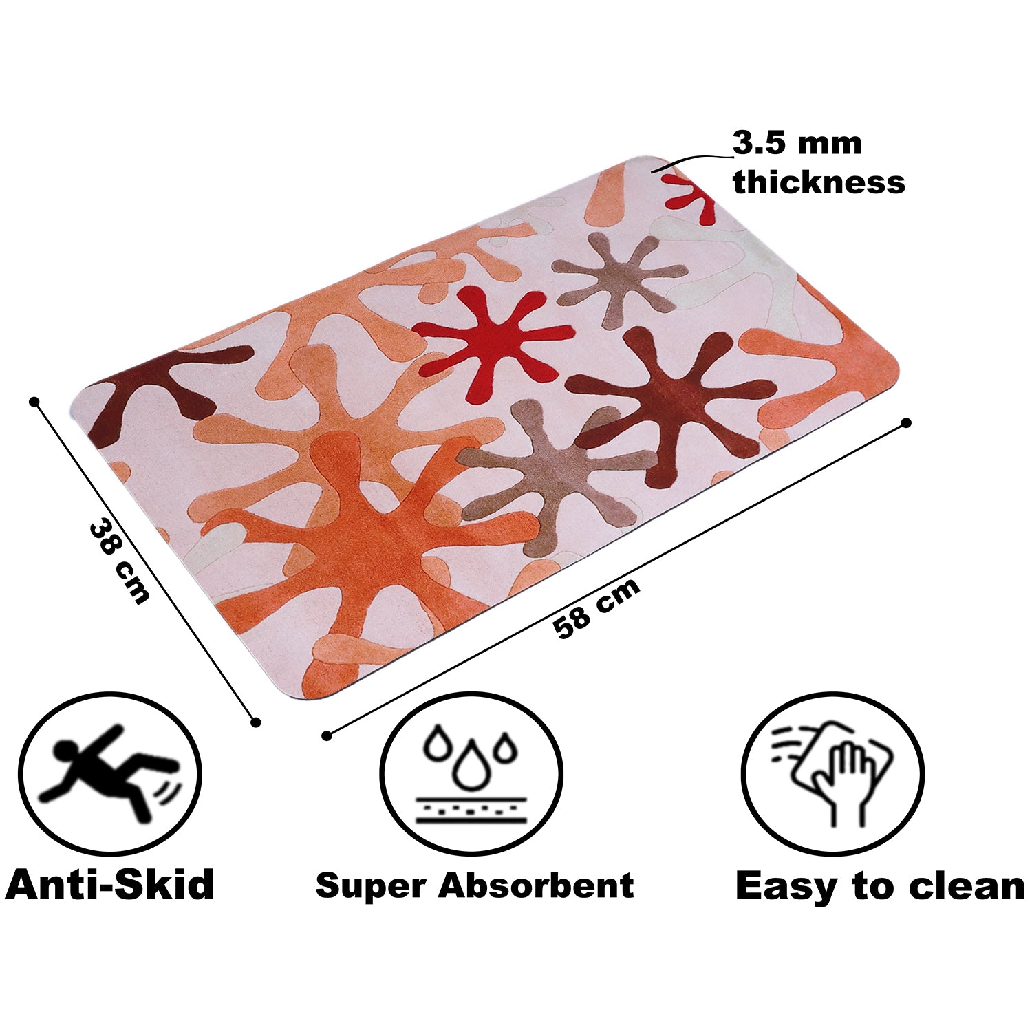 Rubber Bath mat are non-slip bottom made of mesh PVC material, the bathroom mat prevents shifting and skidding, keeping you and your family safe from slipping in the bathroom. Please note that it should be placed on a clean, dry, and flat floor only, as water under the mat can cause it to slip. Always keep the bottom of the foot mat dry. Size: - 38X58cm with 3.5mm thickness.