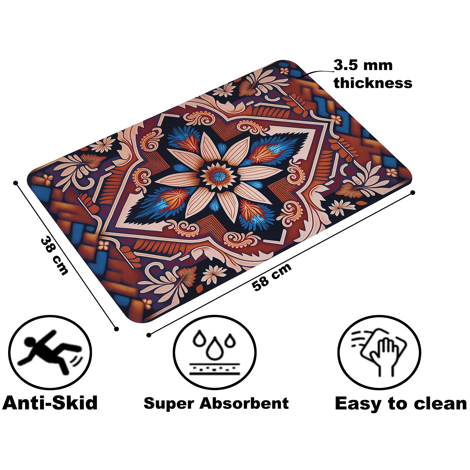 Rubber Bath mat are non-slip bottom made of mesh PVC material, the bathroom mat prevents shifting and skidding, keeping you and your family safe from slipping in the bathroom. Please note that it should be placed on a clean, dry, and flat floor only, as water under the mat can cause it to slip. Always keep the bottom of the foot mat dry. Size: - 38X58cm with 3.5mm thickness.