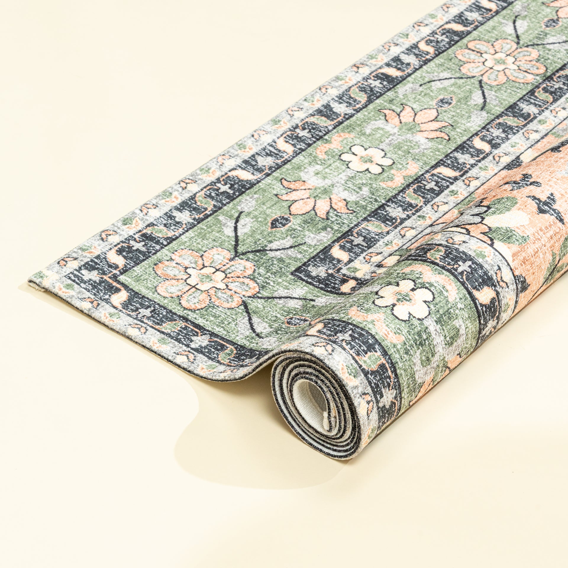 This digitally printed mat is crafted from soft, chenille polyester fabric, offering a luxurious texture and vibrant color detailing. Its anti-skid backing ensures a firm grip on various surfaces, making it both functional and stylish. Ideal for enhancing your home’s decor while providing comfort underfoot. It's available in two sizes 60X90 cm and 120X180 cm.