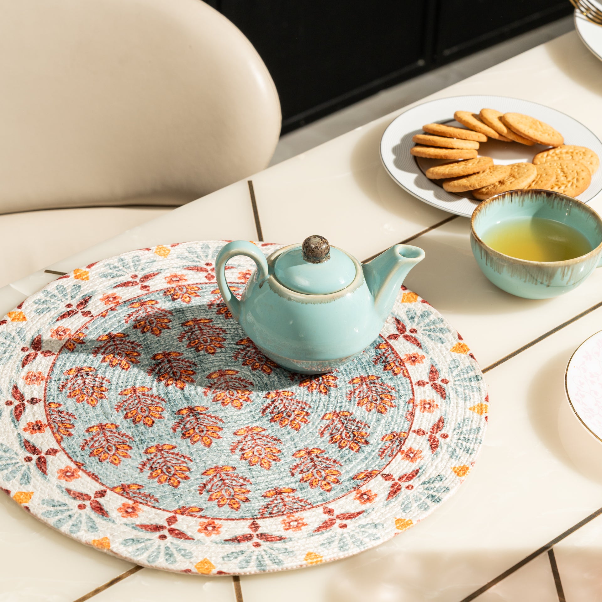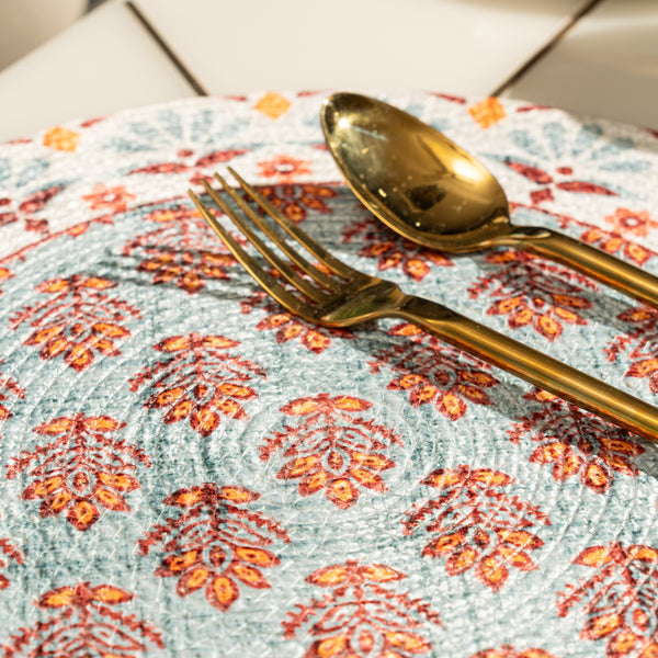 Size: 15 cm round placemat Material: Made from a blend of soft and durable Polyester Design: Features vibrant patterns that add a charming touch to your table décor Versatile Use: Perfect for everyday dining, festive meals, or special occasions Easy to Style: Complements a variety of table settings and colour themes Care: Easy to clean and maintain for long-lasting use