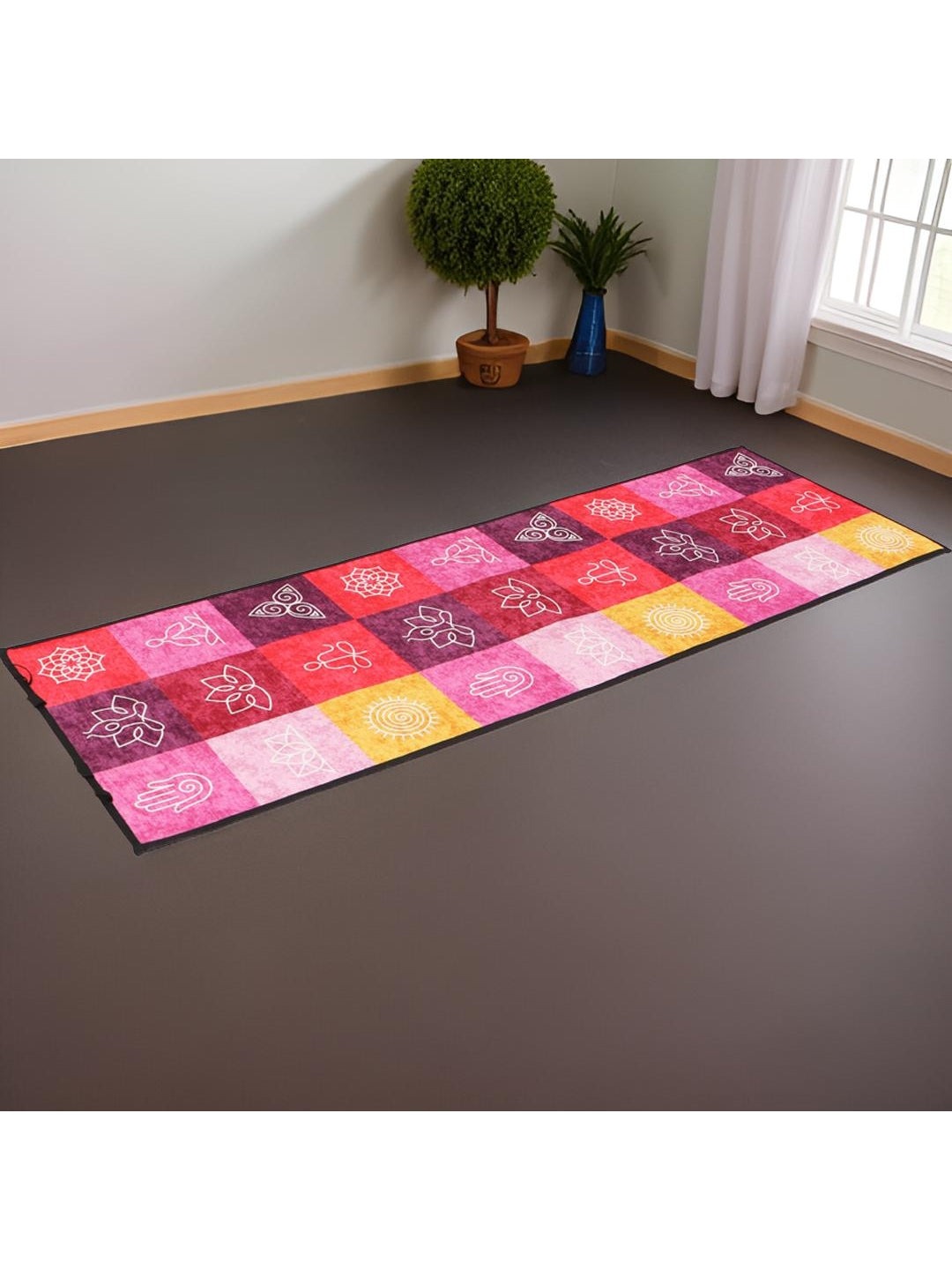 This digitally printed yoga mat is crafted from super soft fabric for a luxurious feel and enhanced with a layer of EVA sheet for superior cushioning and comfort. The anti-skid backing ensures a firm grip on any surface, making it ideal for a safe and stable yoga practice.