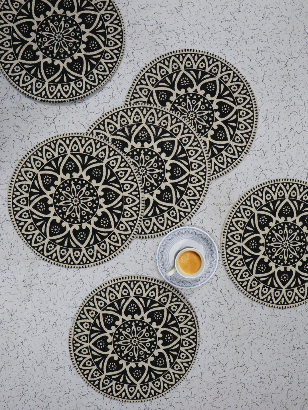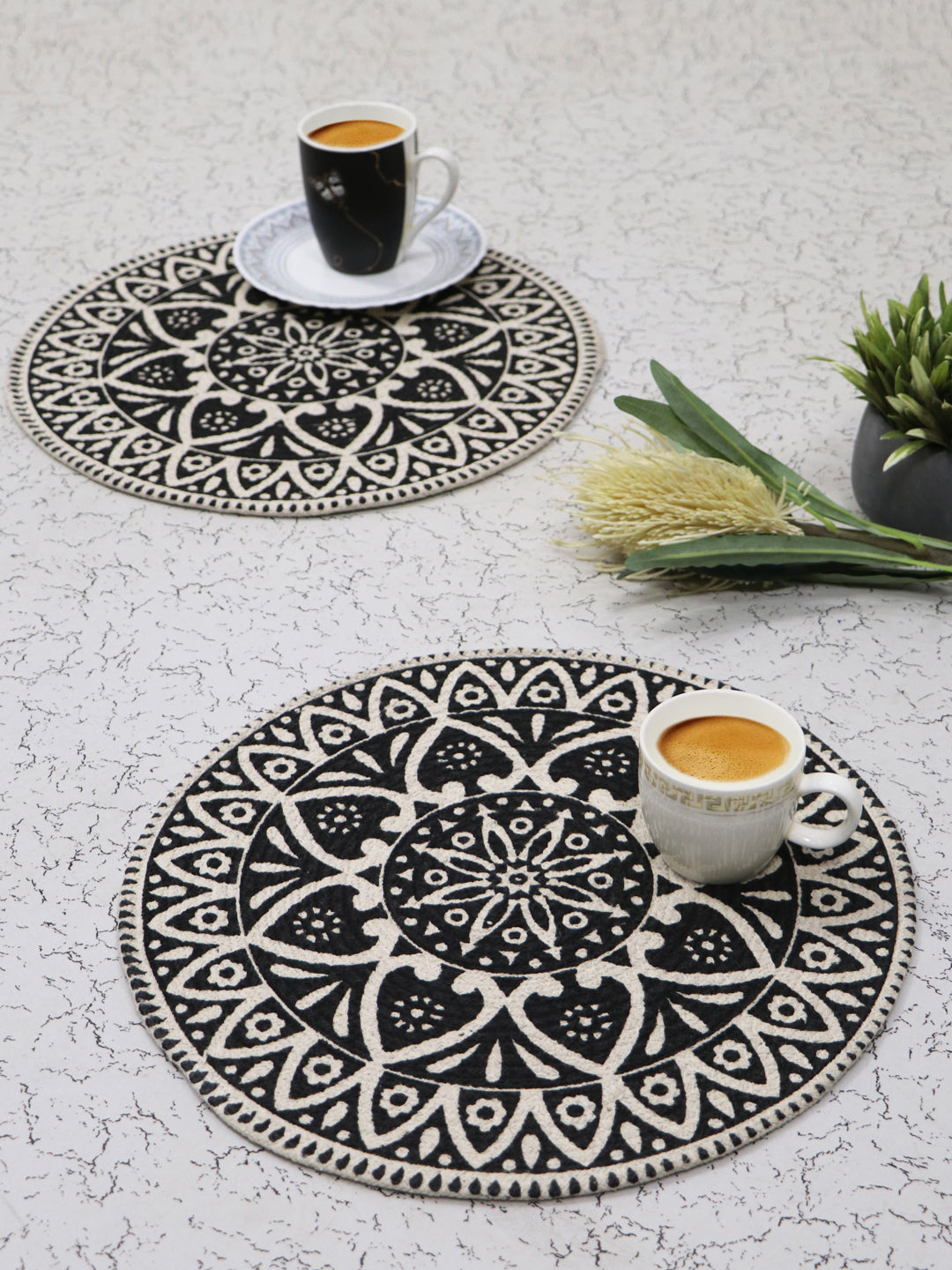 Size: 15 cm round placemat Material: Made from a blend of soft and durable cotton  Design: Features vibrant patterns that add a charming touch to your table décor Versatile Use: Perfect for everyday dining, festive meals, or special occasions Easy to Style: Complements a variety of table settings and colour themes Care: Easy to clean and maintain for long-lasting use